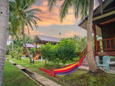 NOTE: None the Bungalows or Houses are equipped for cooking… there is no need, Siboya Bungalows has the best Thai restaurant in southern Thailand… the bungalows are designed for sleeping, showering and sitting on the veranda. Life is outdoors on Koh Siboya.